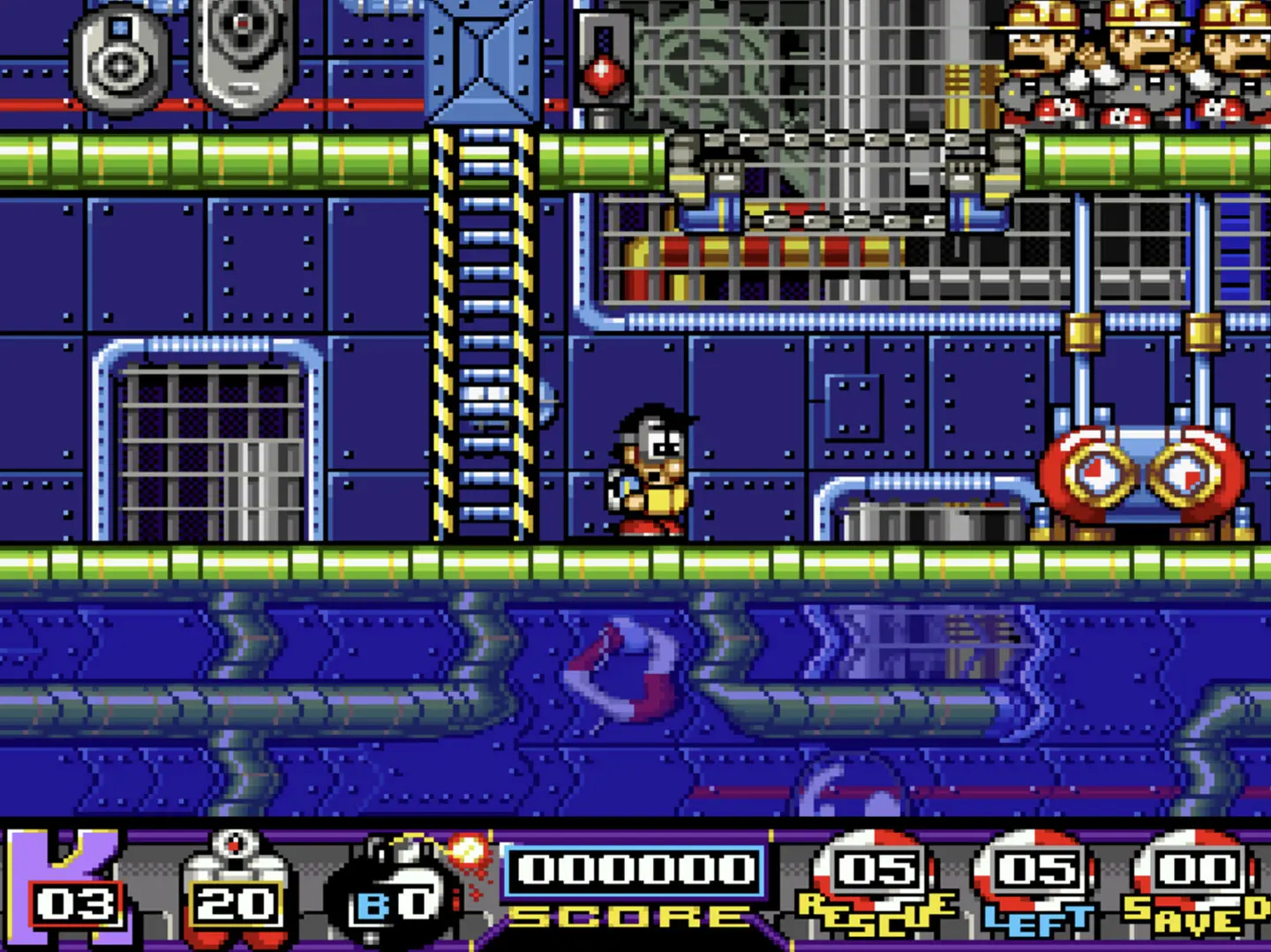SOS: Sink or Swim era un juego de Amiga porteado a diferentes plataformas. Su simpático aspecto escondía un título más complejo de lo que podía aparentar. La mecánica de puzles era una mezcla de Lemmings y Lost Vikings donde controlábamos a un rescatista que debía salvar a los pasajeros de un barco que se hundía. Teníamos que abrirles paso y guiarlos hasta la salida sin que recibieran daño. Para ello debíamos hacer uso de diferentes herramientas y elementos del entorno. El juego se desarrollaba durante 100 fases con un nivel de dificultad progresiva y un tiempo limitado para cada una. Este tiempo se representaba mediante el agua, que iba subiendo lentamente hasta ocupar todo el escenario. Este sistema no solo establecía un límite de tiempo, sino que iba haciendo impracticables partes del escenario según avanzaba. Por su elevada duración disponía de un sistema de passwords para recuperar el último nivel jugado.
