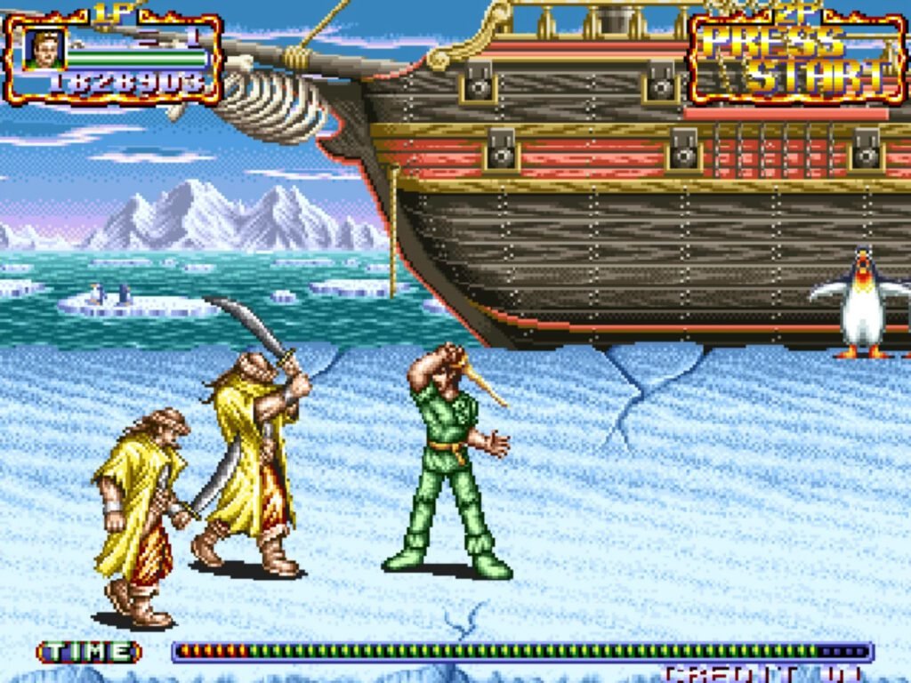 Desde que Final Fight popularizara los juegos de ‘Yo contra el barrio’, aparecieron multitud de beat’em up dispuestos a subirse a la tendencia del momento. Cualquier excusa era buena para liarse a golpes contra todo lo que se moviera. Incluso en universos tan inesperados como el de este Hook desarrollado por Irem.