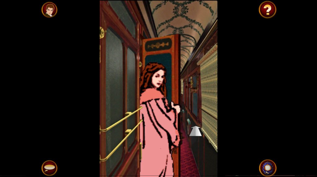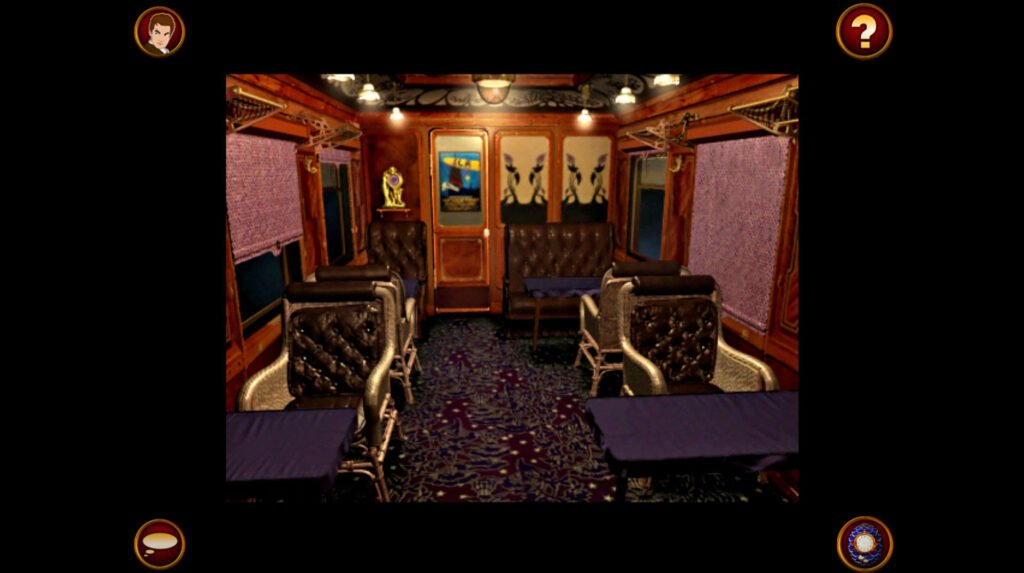 Sin duda alguna, lo que peor ha envejecido son sus controles. Su vista en primera persona aumenta la inmersión, pero dificulta la forma de movernos por el tren. Como los escenarios son pre-renderizados no podemos girar libremente la cámara, sino que seleccionamos vistas predeterminadas a través de flechas que aparecen en pantalla de manera contextual. El movimiento es una ilusión óptica conseguida a base de fotogramas estáticos por los que nos movemos al pulsar las flechas. Un sistema muy anticuado que hace complicado orientarse o saber a qué parte de la estancia estamos mirando. Es fácil desorientarse incluso dentro de un camarote que tenga varias puertas. Con frecuencia vamos a ir hacía el lugar equivocado al que queríamos porque hemos perdido la referencia al cambiar de vista para inspeccionar algo. Por suerte, el tren no es muy grande y acabamos memorizando los lugares a base de visitarlos con frecuencia.