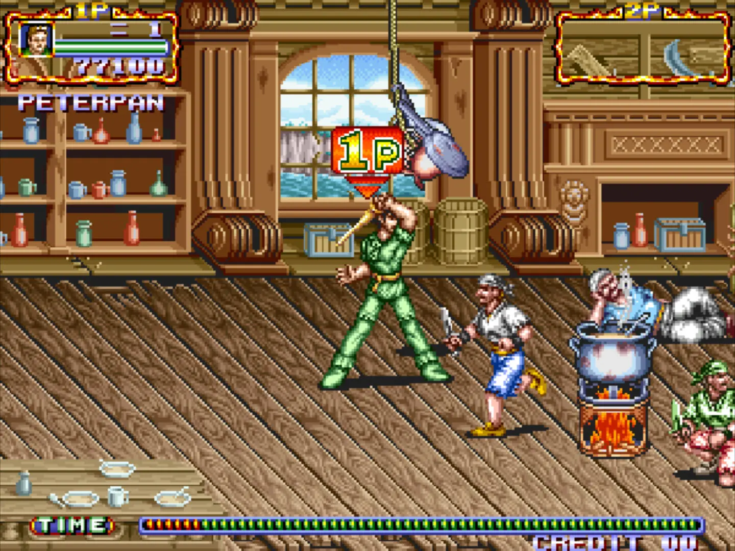 Sí, era un juego licenciado. Formar parte del merchandising de una película era una mochila pesada, pero tenía su encanto. Era de los pocos beat’em up que incluían la mecánica de golpear enemigos cuando estaban en el suelo y de utilizar elementos del entorno como ventaja táctica. Tenía un diseño artístico muy bonito, con escenarios bien detallados y un puntito de humor visual. Sus cinco personajes bien diferenciados le daban un extra de re-jugabilidad. Y ver a Peter Pan repartiendo estopa, no tenía precio.