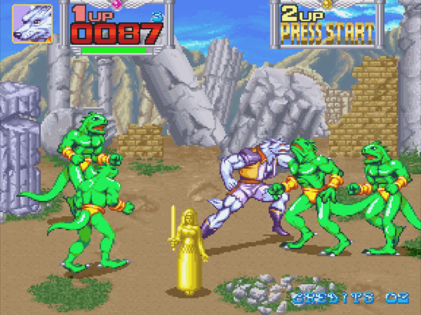 Cuatro guerreros con la habilidad de transformarse en animales antropomórficos debían librar al mundo de un malvado rey resucitado. Su jugabilidad rápida y sus coloridos gráficos lo convertían en un llamativo título de los salones recreativos. Tiene una dificultad accesible si lo comparamos con otros juegos del mismo género. Por esa razón, en las versiones lanzadas fuera de Japón se sustituyó la barra de vida del personaje por un contador numérico que bajaba poco a poco. Lo que nos metía presión obligándonos a avanzar de forma precipitada y cometiendo más errores.