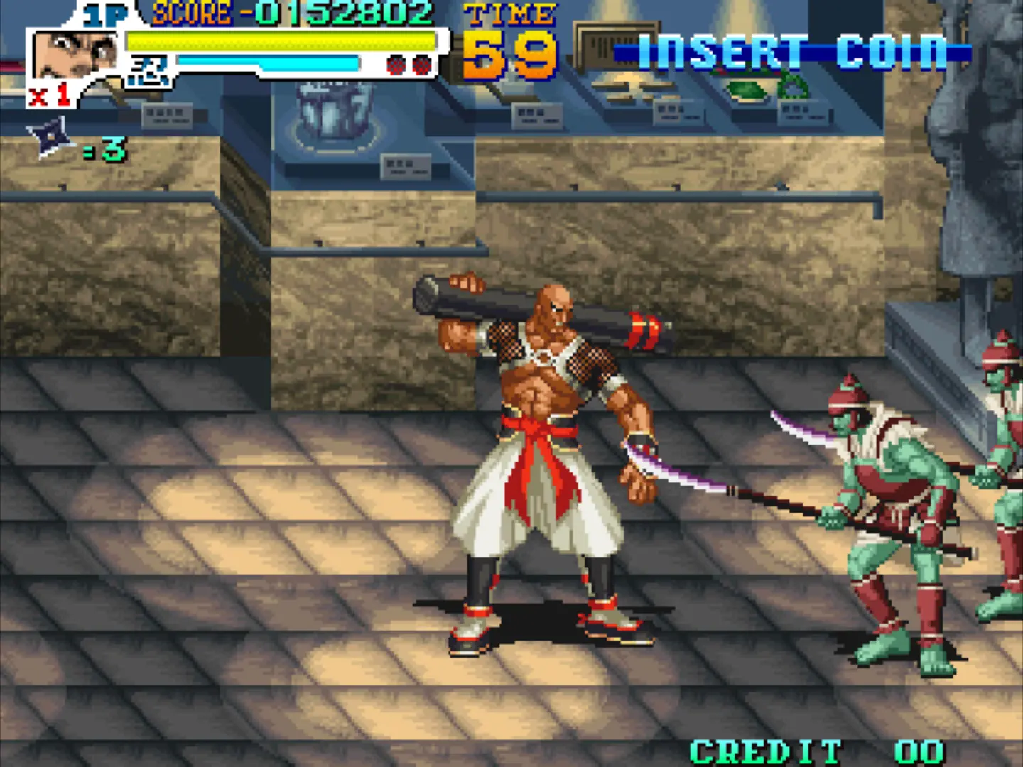 Quizás sea el juego con mayor nivel técnico de la placa Neo Geo MVS. Su jugabilidad se caracterizaba por tener dos botones de ataque, al estilo de los primeros brawlers que separaban el ataque de puño y patada. Aquí sucede algo parecido. Con un botón golpeábamos con el puño y con el otro atacábamos con el arma que traían los personajes de serie. Un ataque más lento pero más de mayor poder y alcance. Había un tercer botón de ataque para lanzar armas arrojadizas limitadas, que podíamos recoger durante el juego. Otras señas de identidad de este título eran la posibilidad de elegir el orden de los niveles y las rutas ramificadas. Pero lo más curioso eran los dos personajes desbloqueables. Se trataba de dos jefes finales que se unían a ti tras derrotarlos.