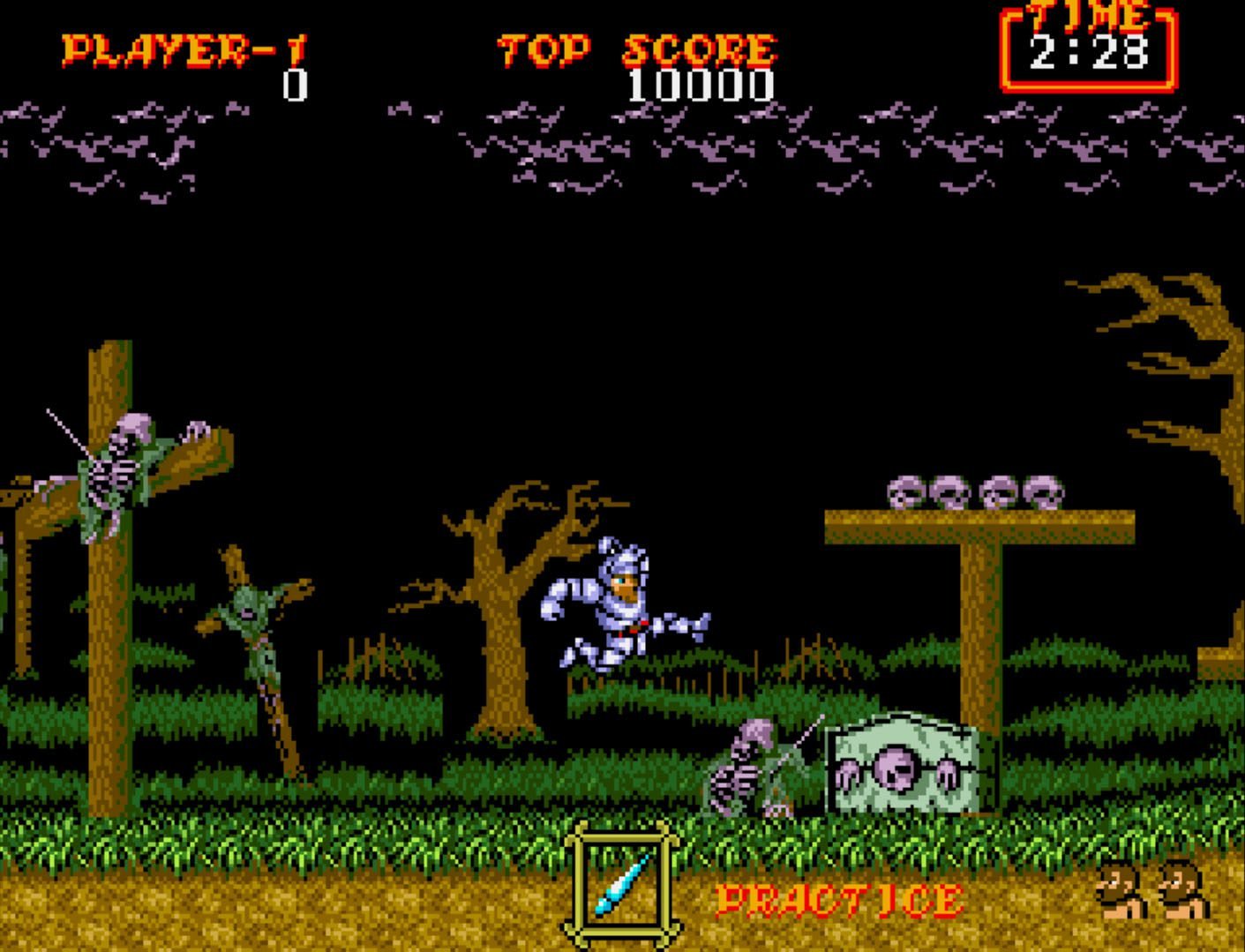 Ghouls’n Ghosts tenía una dificultad terrible. En su versión arcade se adaptaba al jugador en tiempo real. Esta aumentaba de forma gradual cuanto más tiempo pasara sin morir. La descripción gráfica de tragamonedas.